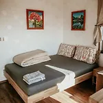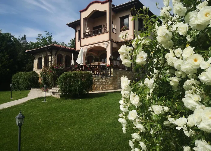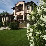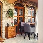 Къща За Гости Villa Jurta Avren med 2 sovrum har en parkering och en terrass med utsikt över bergen.